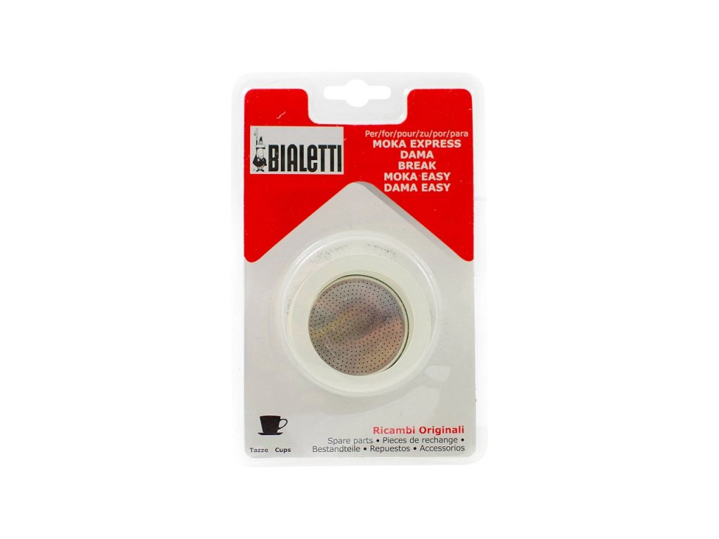 Sada gumových těsnění pro hliníkové moka konvičky Bialetti pro 12 šálků. Tato sada těsnění je kompatibilní s modely Moka Express, Damma a Fiametta na 12 porcí espressa. Balení obsahuje 3 vyměnitelná těsnění a sítko z nerezové oceli.