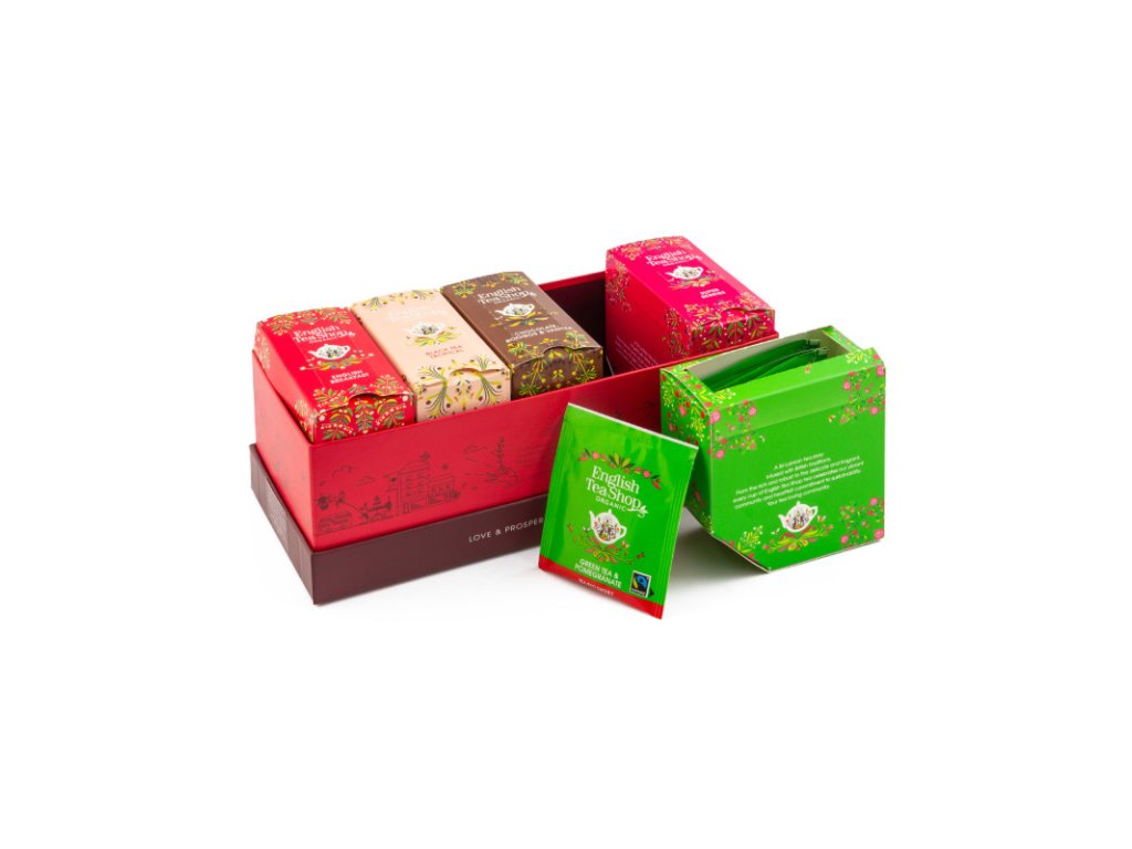 Okouzlující čajová kolekce Everyday Favorites z dílny English Tea Shop obsahuje 5 různých krabiček po 8 nálevových sáčcích. Vybírat můžete z černých, zelených, ovocných čajů i lahodného rooibosu.