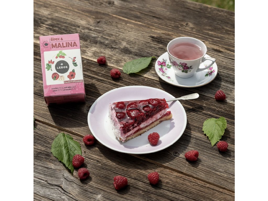 Sladkou chuť malin a malinového listu doplňuje lehce štiplavá, nakyslá chuť šípků.