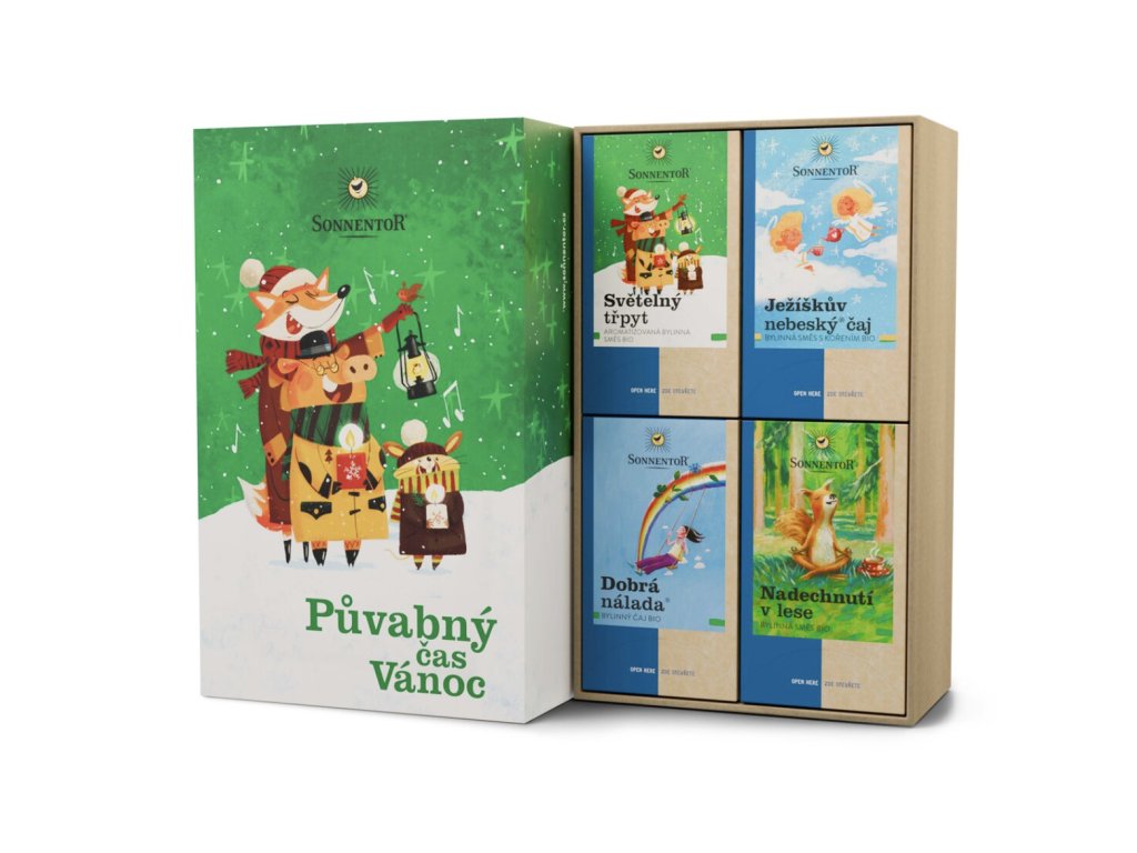 Hledáte něco, co zaručeně potěší a udělá radost? Darujte dárkovou kazetou skvělých čajů, které zahřejí na těle i na duši. Uvnitř najdete 4 krabičky designově krásných, voňavých a lahodných čajů z dílny Sonnentoru.