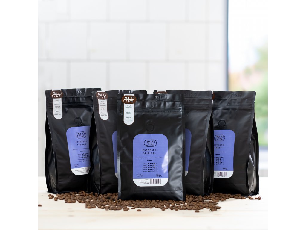 Dopřáváte si rádi šálek espressa a oceníte více hořkou a výraznější chuť? Nebo si do kávy rádi přiléváte mléko a chcete, aby i po tom měla káva plnou chuť? Připravili jsme pro vás balíček našich pěti espresso směsí, kde mícháme arabiku s robustou pro ty nejlepší výsledky při přípravě espressa. Bohatá pěna, omamné aroma, vyvážená chuť, příjemnou dochuť, to jsou naše espresso směsi, zkuste je.