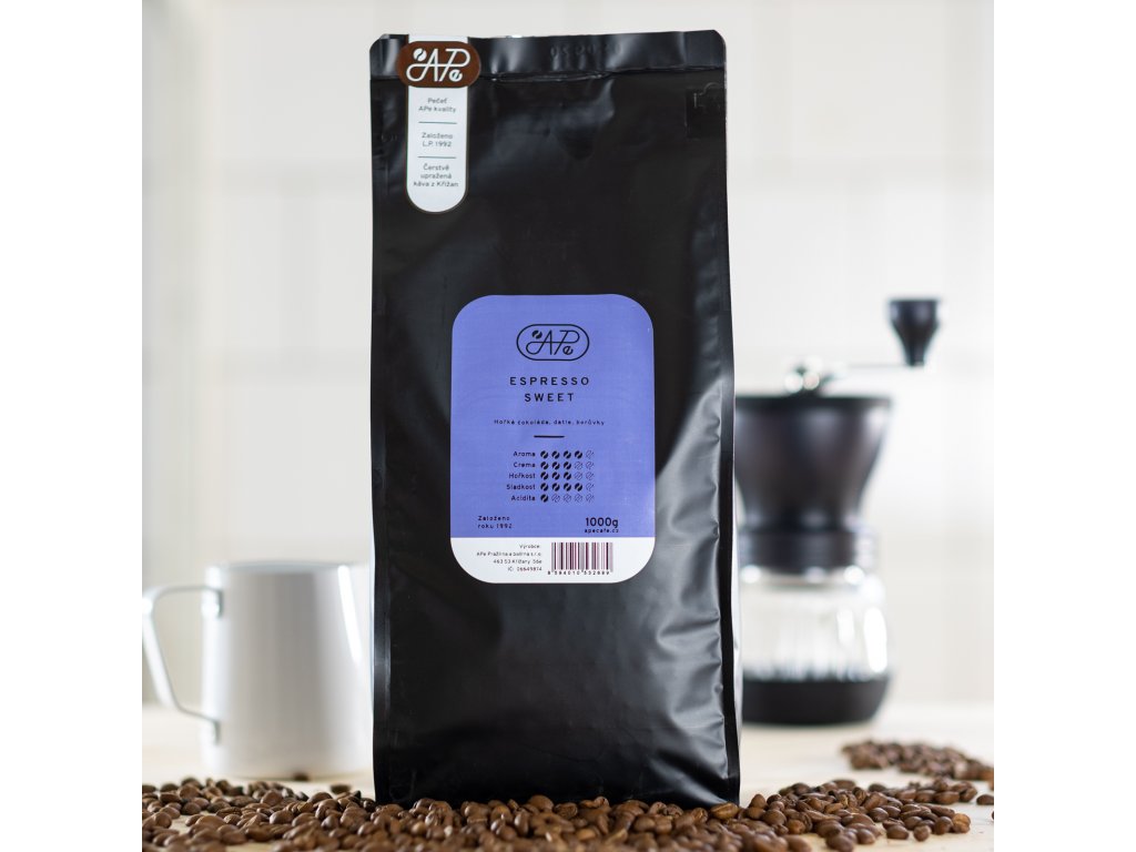 Směs Espresso Sweet je vhodná pro ty z vás, kteří preferují spíše jemnější kávové chutě. 20 % kávy robusta v této směsi poskytne Vašemu espressu nezbytnou cremu, ale nenaruší jemnou chuť zbylých 80 % vybraných arabik.