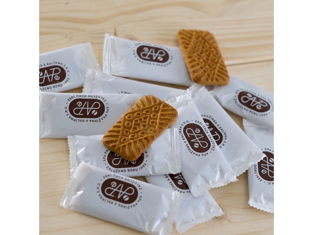 Složení: pšeničná mouka, cukr, ztužený rostlinný tuk, cukrový sirup, sójová mouka, kypřící prostředky (uhličitan sodný), jedlá sůl, koření, stopy skořice , E500