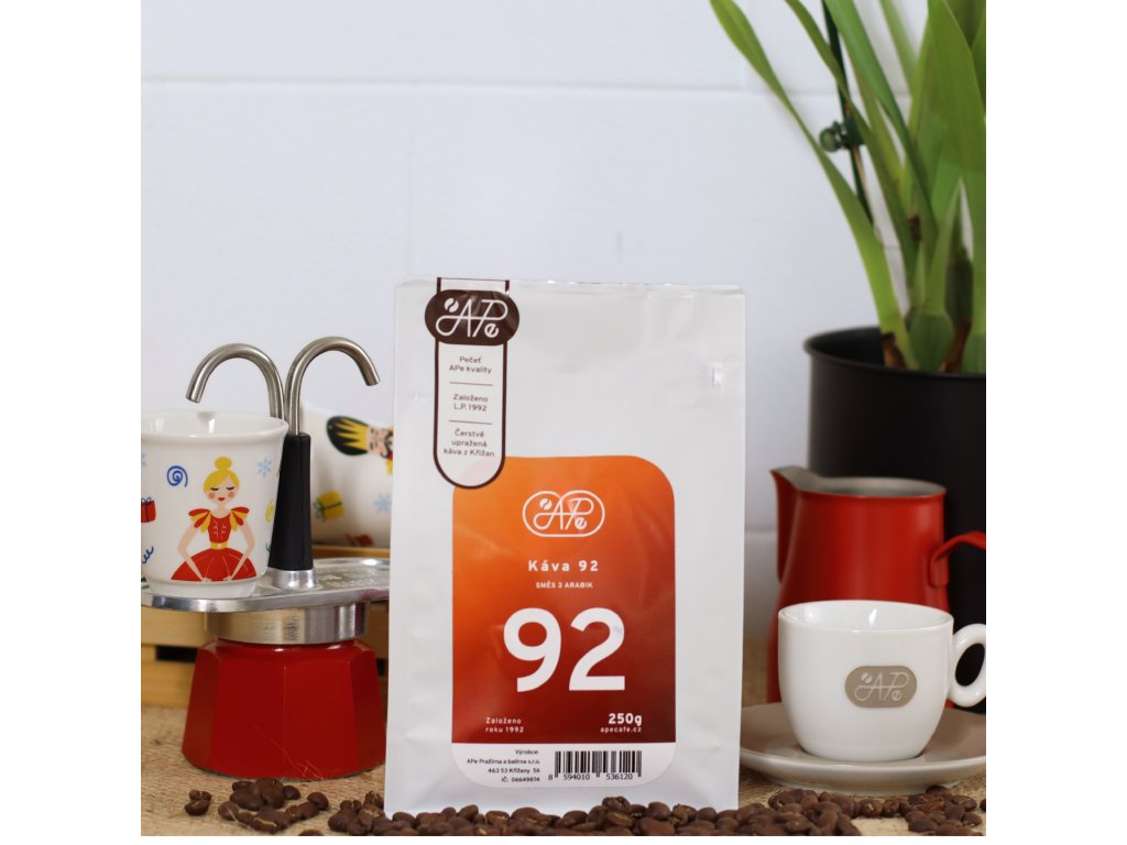 Káva 92 vznikla při příležitosti 30 letého výročí založení naší pražírny. Je namíchána ze třech vašich nejoblíbenějších arabik z Ameriky, Asie a Afriky. Z limitované edice se díky její oblíbenosti stala jedna z našich nejprodávanějších kávových směsí, a proto si ji můžete vychutnávat i nadále.