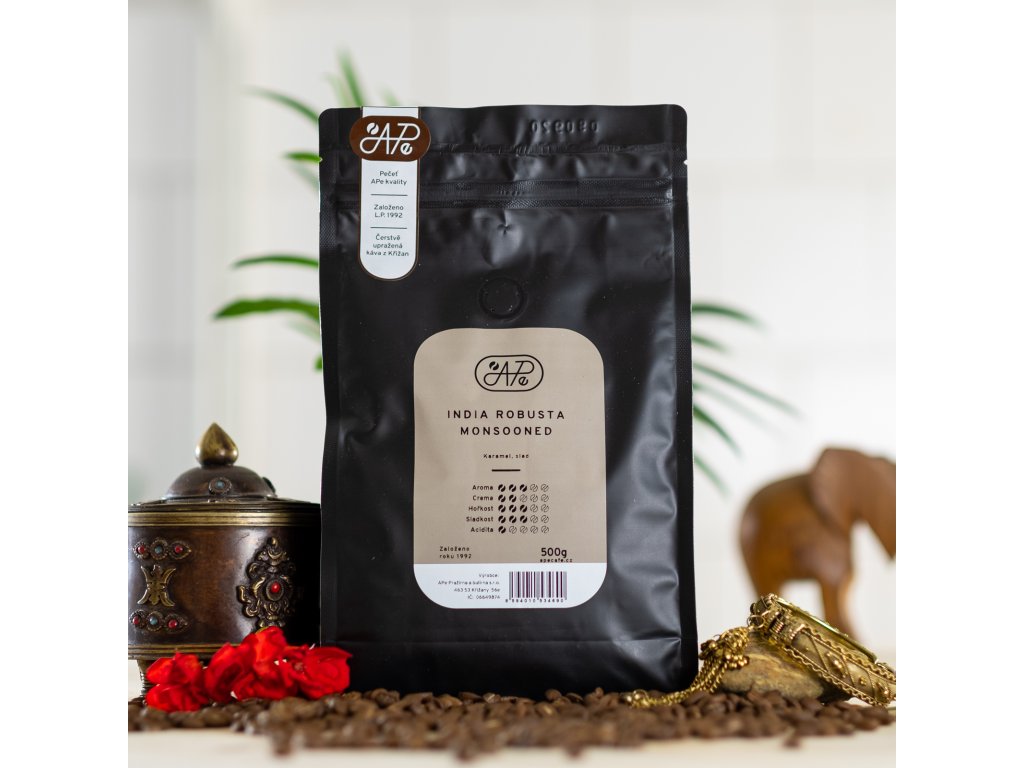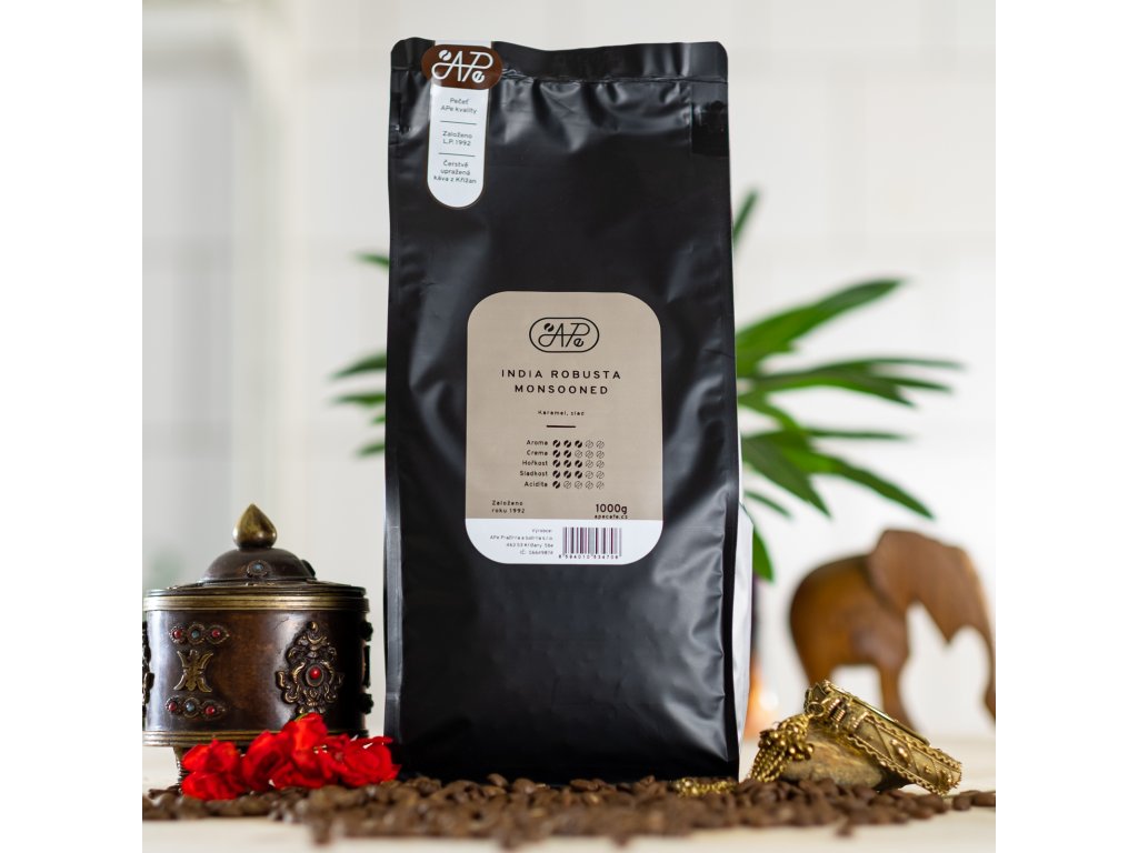 Nově Vám přinášíme indickou robustu, která prošla procesem "monzunování" a díky tomu je (na robustu) velmi jemné chuti. Potlačena je zde acidita i hořkost a káva je krásně vyvážená.