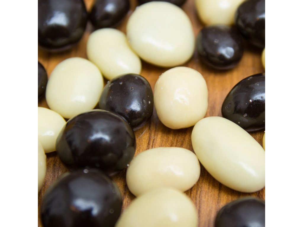 Složení: Arašidy v jogurtu: jogurtová poleva 55% (cukr, rostlinný tuk palmový, syrovátka z mléka, rýžová mouka, jogurtový pudr z mléka 2,5%, slunečnicový lecitin E322, arabská guma ,šelak E904), arašídy 45%, Arašidy v karobu: karobová poleva 55% (cukr, rostlinný tuk palmový, syrovátka z mléka, pudr ze svatojánského chleba 5%, rýžová mouka, slunečnicový lecitin E322, arabská guma, šelak E904), arašídy 45%, Rozinky v jogurtu: jogurtová poleva 66% (cukr, rostlinný tuk palmový, syrovátka z mléka, rýžová mouka, jogurtový pudr z mléka 3%, slunečnicový lecitin E322, arabská guma, šelak E904), rozinky 34%, Rozinky v karobu: karobová poleva 65% (cukr, rostlinný tuk palmový, syrovátka z mléka, pudr ze svatojánského chleba 5,7%, rýžová mouka, slunečnicový lecitin E322, arabská guma, šelak E904), rozinky 35%