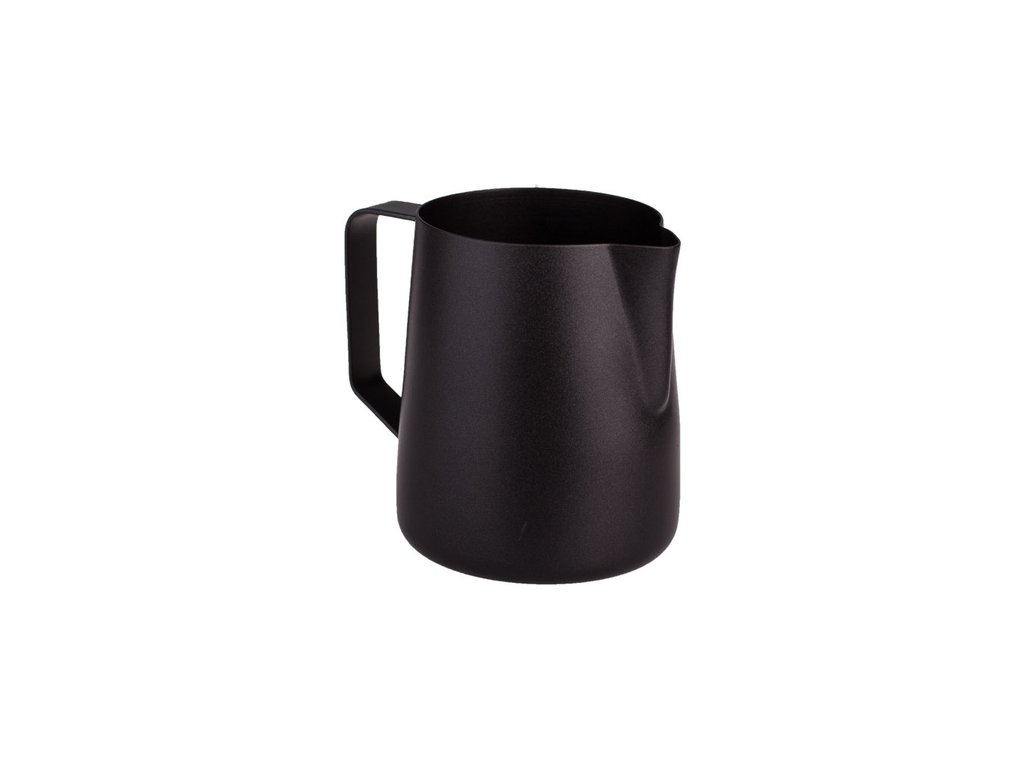 Vyrobena je z nerezové oceli o tloušťce 1 mm, pokryté dvojitou vrstvou černého teflonu. Designově je skvělá pro každou kavárnu, ale krásně doplní také vaši kuchyň. Díky teflonové vrstvě je snadno omyvatelná. Pohodlná rukojeť, elegantní design a praktický tvar "zobáčku" z ní činí ideální nástroj pro každého milovníka latte art.